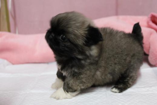 こんばんは、 先ほどスタッフの 大根丸ごと1本買っていくと旦那さんに どこかで盗んできたんぢゃないか疑惑をかけられる系妖怪ぬんたも氏との ぢゃんけん勝負に敗北し、ブログを更新する誰かですorz 本日は、わんこのご紹介。 「ペキニーズ」の女の子。カラーは、“フォーンホワイトマーキングス” H27.11/26生まれ~ 足元をよく見ると~ 前足だけ靴下履いてまス 横から~ 足短いぃぃぃーーーwww かわええぇぇぇぇ さすがのお父さんチャンピオン犬の血です ペキニーズを自宅で3匹飼っている当店youngestスタッフの藤子ちゃんも お墨付きの可愛さデス まだ小さいので、店頭には出ていませんので ご覧になりたい方はお気軽にスタッフまでお申し付けください ご来店お待ちしておりまス