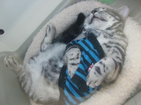 ちょっと分かりにくいですが、グレーと白のコです。