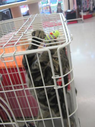 こんにちは、バイトのMです。 突然ですが、猫ちゃんを飼育されてる皆様、 『にゃんもっく』 使ってみたことありますか? ふかふかのベッドも良いですが、にゃんもっくで寝ている猫ちゃんはまた格別に可愛いのです。 アメショちゃんに実演していただきました。 今、お使いのケージに引っ掛けて吊るすだけ! あっという間にハンモックが出来ちゃいます。 あ、スタッフが乗せたわけではなく、自分で選んでここに居るんですよ。 使い心地はどうだい? ……悪くなさそうですね。 ベッドも床に置いてあるんですが、見る度にここで寝てるので、快適なんだと思います。 色んなにゃんもっく揃えてみました。 お値段も大体3000円ちょっとなので、ベッドを買うより安いと感じる方も居るのでは…? お昼寝大好きな猫ちゃん達に、ピッタリのアイテムです♪ そして、新入りちゃん… アメショのシルバータビー。男の子。 のんびりマイペースな感じです。 ノ、 ノ、 ノルウェージャン!! カメラ好きなんですかね?抑えてないとカメラで遊んでしまいます(笑) 吊り目で怖そうな印象ですが、 おててペロペロ なでなでも… とっても甘えん坊さんで、人が好きな子です。 これは…お迎えしなきゃ…(・`-・)(マンチカンの時と同じパターンを期待するM) ノルくんと遊んでいると… ドラ様が見てる。 ドラ様のヤキモチ。 みんな可愛いです。 猫カフェの如く、猫ちゃん集まってますので、是非立ち寄ってみて下さい(^▽^)ノシ
