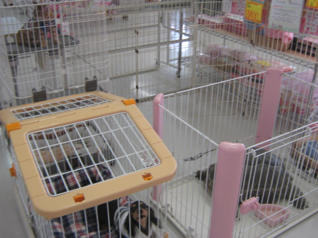 こんにちは、バイトのMです。 人数の減った流山店ですが、みんなで何とか頑張っております(`・ω・´) はてさて、小動物コーナーの模様替えをしていた訳ですが、犬猫コーナーも今月は模様替えしちゃうんだぜ! まだ準備中ですが、猫フェアを開催するべく、ケージを移動しております。 かぶきさんが入っていた大きなサークルは畳んでしまいました。 そう…かぶきを他の店舗へお引越しさせるのです… 近い内に居なくなってしまうので、かぶきさんに会いたい方はお早めに~(´・ω・)ノシ 代わりにマンチカンやスコティッシュが引越ししてくる予定です。 猫フェア自体は確定なので、猫ちゃんをお探しの方はお見逃し無く! 猫とは関係ないですが、オカメちゃんも新しく入荷しております。 うぶうぶ文鳥も、居るよ!(・▽・) すっかり手乗りデグーになったパイドさん。 扉を開けると自分から手の上に乗ってきます。 白いからマシュマロって名前で良いかな… 可愛い子が選り取りみどりです。 お散歩ついで、お買い物ついで、お出かけついで…近くを通ったら、寄ってみてください(^v^)