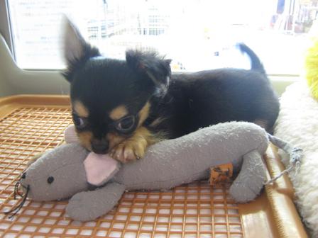 こんにちは松っあんです 昨日のブログは店長が大好き?なカエル特集でしたね! いつもいろんな種類のカエルがやってきますが わたしはベルツノガエルとクランウェルツノガエルの見分けもつきません さぁそして!お待たせしました!! 久しぶりにかわいいちびっこワンコがやってきたので早速ご紹介しちゃまふっ ベッドの下で伸びて寝ているこのコ。 寝起きドッキリ風に起こしてみましょー っと思ったらシャッター音で気付かれました ではベッドから出ていただいて・・・ ロングコートチワワの女のコです(H26.7.3生) まだ手のひらサイズですがムッチリしてます。 お耳はまだ左側はお休み中みたいですね 性格は馴れてくるとちょっと生意気かもっ? でも甘えん坊でなでなで大好き! 遊んでもらうのも大好きなので ロングねずみを差し入れ。 捕獲 (睡魔のせいで画像のテンションがオカシイですが気にしないでクダサイ。。。) テンションがあがるとメチャクチャ跳ねます。 わたしチワワ好きなのでもう一生遊んでいたいぐらいです そんな金星人並にかわいいチワワさんのお値段・・・お店にて 明日はきっとMさんが大好きな新入りワンコを紹介してくれるハズっ! こうご期待