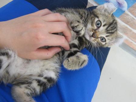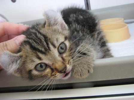こんにちは松っあんです いよいよ夏ですねぇ~ なのでバッサリ髪の毛切りました!パーマもかけちゃったぁ 元々切ろうか迷っていた時ちょうどタイミングよく 美容師をやっている幼馴染がカットとパーマのテストがあって モデルさん?を探していると言っていたので協力する事に! すべて無料でやって頂いてとてもありがたいです 頑張ってパーマ維持していきます! さて、そんなことは置いといて 新しくネコさんが入舎してきたのでご紹介します。 アメリカンカールMIXの女のコ(H26.5.17生) まだ手のひらサイズですよ 性格はとっても甘えんぼでスリスリが止まりません。 お腹を撫でてもらうのも好きみたいですぐにゴロン。 こんなに甘えられたらゴハンも食べずに遊んでられるなぁー そうそう! しばらく遊んであげるとお腹が空くらしく フードをガチ食い。 そして 味を変えてカンヅメへ。 1口食べてはまたフード。またカンヅメと何度も交互に食べていました。笑 そんな器用なアメカールさんの気になるお値段・・・・・・・お店にて 只今夏祭りセールということで驚きのお値段に!!