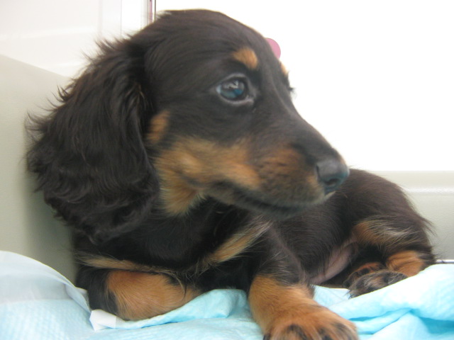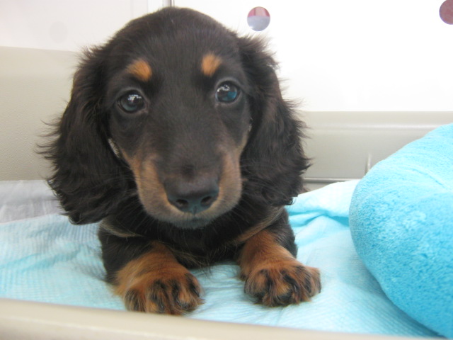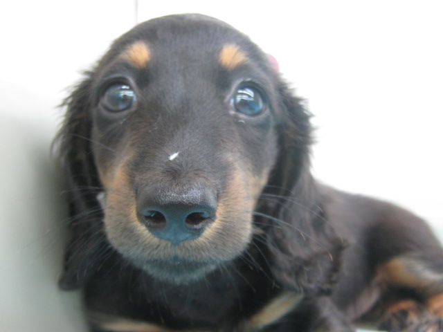 こんにちは、バイトのMです。 先日のダックスくんを紹介します^▽^ 横顔。イケメンですね。 ブラックタンの麻呂眉は可愛いです。 でも、 正面向いたらゴミ付いてた… 本人的には『そんなの関係ねぇ』って感じでしょうか。 多分気付いてないです。 性格もとても可愛いのですが、もう一つのチャームポイント。 前足の付け根。ここの模様が何だか可愛い。 きれいきれい。 8月13日生まれの男の子です。 若干大きめサイズに育つのではないかと思われます。 どっしりしたコがお好みの方は、是非。 気になるお値段、何と――!!! 店頭にてお確かめください^^